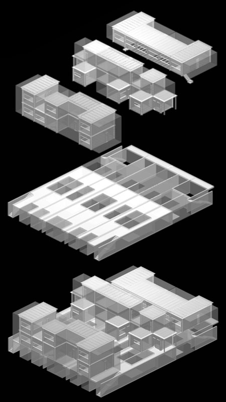 Il progetto presentato in occasione del concorso Elemental Chile è stata una preziosa occasione per affrontare un tema -abitazioni a basso costo espandibili a seconda delle possibilità economiche degli inquilini– da noi ritenuto cruciale per le numerose implicazioni che stabilisce con i fenomeni sociali in atto in questo scorcio di inizio millennio –le crisi umanitarie, le situazioni di emergenza abitativa dovute a guerre, etc.– nutrendo la convinzione che oggi il progetto di architettura debba sapersi confrontare con queste delicate tematiche attraverso i suoi stessi strumenti proponendo delle risposte concrete ad esigenze e problemi reali.