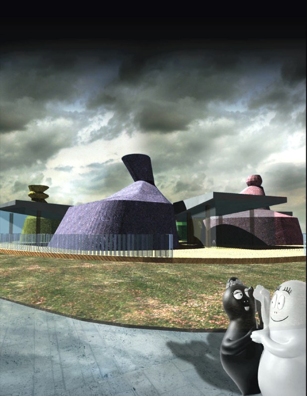 Nelle forme e nel concetto che lo istruisce. Alla scala urbana il programma funzionale individua come poli primari il nucleo abitativo (la casa), il nucleo didattico (la sezione) ed il sistema ambientale costituito dagli spazi di verde attrezzato posti in diretta adiacenza delle scuole e della promenade urbana. Stabilite queste polarità, che definiscono nello specifico ambiti accoglienti e rassicuranti interpretati come spazi uterini e placentari, prende corpo e si materializza il filo che li unisce e connette l’uno all’altro: il sistema di percorsi e traiettorie preferenziali pensato per i bambini ed i loro accompagnatori che come cordone ombelicale avvolgente e protetto si distingue e protegge dal traffico veicolare innervando episodi specifici (la casa, la scuola, il parco..).