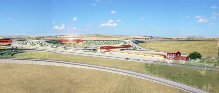 Il progetto dunque recepisce e condensa al suo interno questi 4 elementi identitari e li traduce nell’adozione di un muro “stilema” che abbiamo definito muro “tholos”, una struttura muraria appunto realizzata in calcestruzzo rivestito da pietra locale faccia a vista, il cui pacchetto complessivo misura un totale di 40 cm di spessore. La genesi formale dell’intero disegno planimentrico dello svincolo n°2 ribattezzato “ecosvincolo 2.0” si avvale delle suggestioni derivate dalla morfologia del Pulo di Altamura unitamente alla riproposizione dello stilema del muro “tholos” e degli uliveti così diffusi in questa zona.