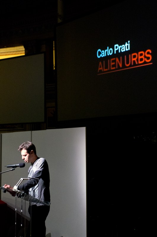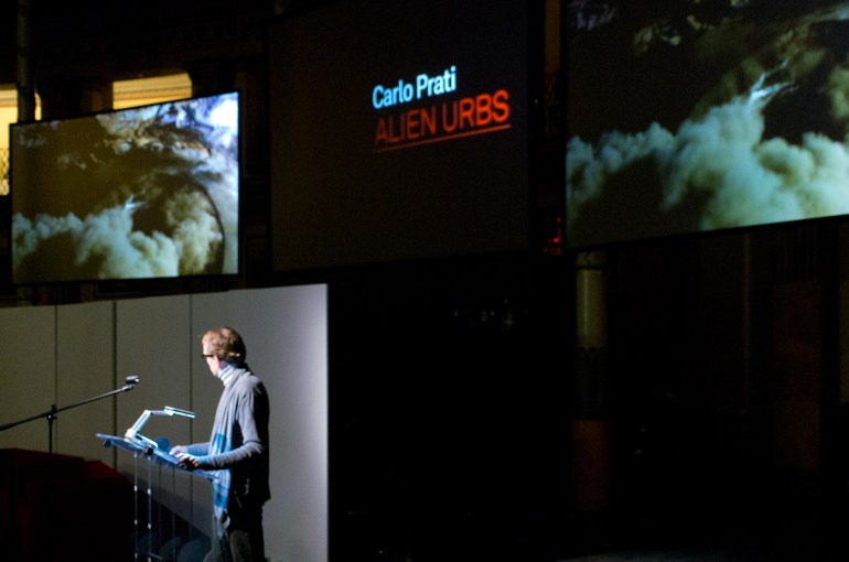 Video registrati il 12 Dicembre 2013 presso la Sala centrale della Casa dell’Architettura di Roma / Acquario Romano in occasione di Alien Urbs / The reading session I° la prima esecuzione della performance tratta dai racconti di Carlo Prati contenuti nell’omonimo libro con l’allestimento audiovisivo ideato per lo spazio centrale dell’Acquario Romano da Tango produzioni e Fabrizio Masciovecchio.