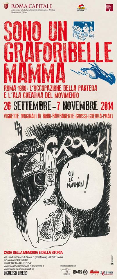 La mostra SONO UN GRAFORIBELLE MAMMA, alla Casa della Memoria e della Storia dal 26 settembre al 7 novembre 2014, riapre gli archivi segreti de i Graforibelli, evidenziando in una raccolta di un centinaio di vignette le aree tematiche di questa produzione: il rapporto verso l’interno del movimento,il rapporto con la politica,il rapporto con le strutture del potere universitarie,il rapporto con la città.Le vignette originali di Andrea Guerra, Carlo Barbanente, Carlo Prati, Roberto Grossi e Valerio Bindi sono esposte per la prima volta a venticinque anni di distanza. Le vignette partivano a raffica, riprodotte dai toner esausti delle facoltà o stampate a bassa risoluzione dalle vecchie e ombrose macchine dei fax. Sono state un potente fenomeno virale che ha veicolato i temi del movimento e i suoi linguaggi e sono state riprese in tempo reale dai principali media, costruendo un vero e proprio canale politico e indipendente di comunicazione. È un fatto nuovo e importante: la produzione dicultura della Pantera (video/scrittura/disegno) e tutto il lavoro fatto sullacomunicazione e il linguaggio diventano non una espressione “organica” dicontenuti politici tradotti in altre forme, ma proprio un lavoro indipendente creativo (e antagonista) che esprime in sé il movimento.