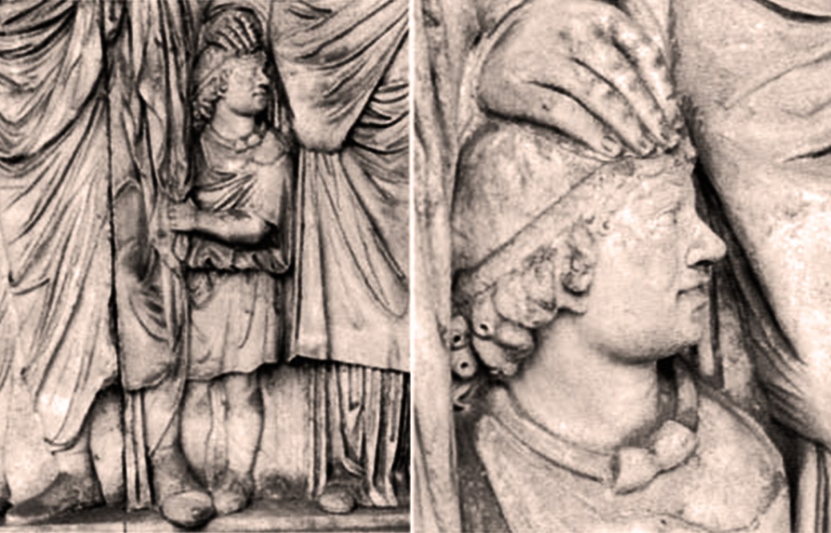 Olga si riconosce in una di quelle donne che lentamente si allontanano e scemano verso la città; seguono il corteo che accompagna il Divo Imperatore. Si lascia trasportare; è immersa in un sogno e l’andatura è lieve. La donna d’alabastro, con un movimento impercettibile del collo, la guarda e le fa dono di un sorriso tenerissimo, poi accarezza con lo sguardo suo figlio più avanti mentre si stringe al guerriero.