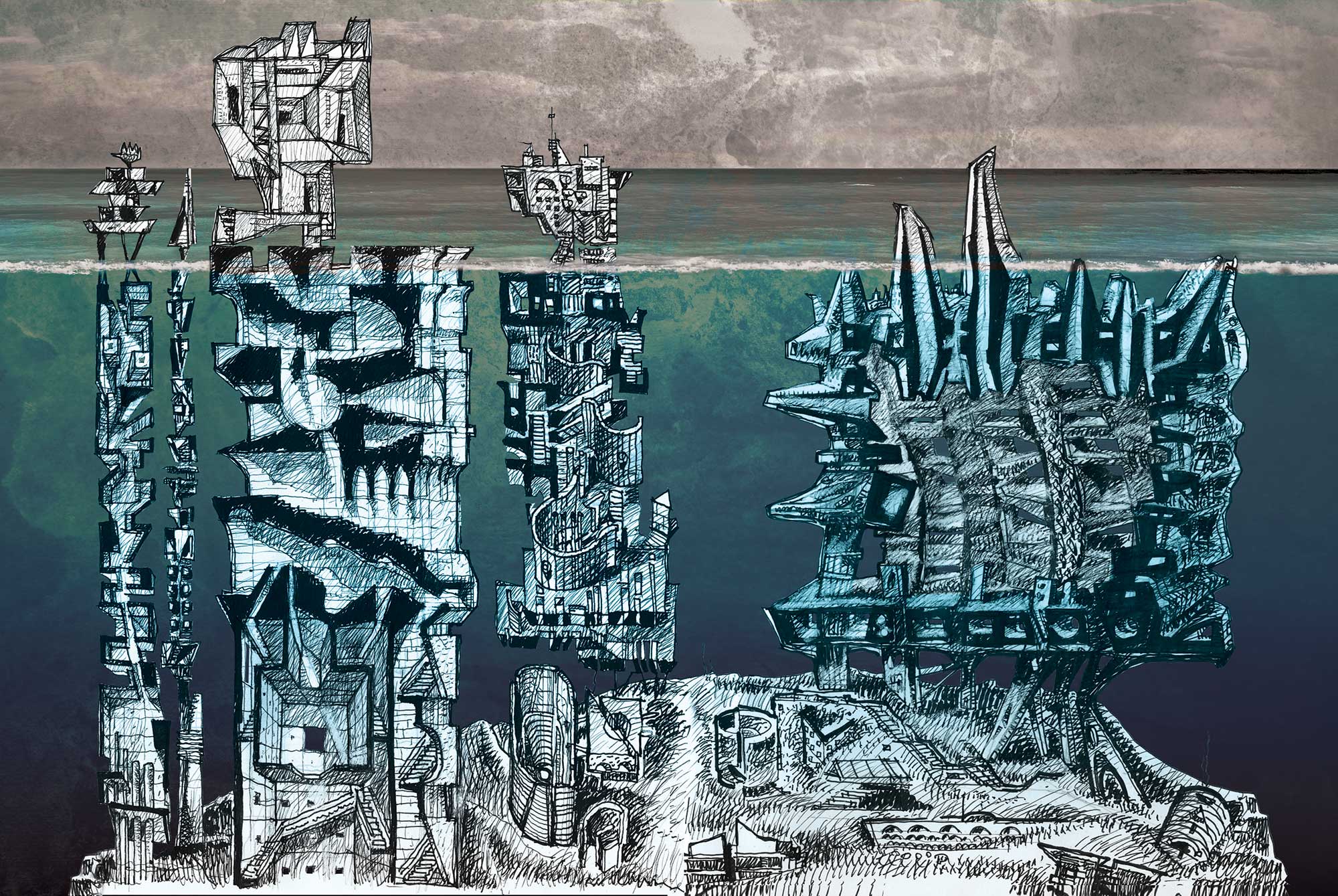 Sono qui di seguito raccolti i disegni originali che ho realizzato per la sala centrale della Casa dell’Architettura di Roma in occasione della mostra ATLANTIDE curata da Giorgio de Finis ed ospitata presso l’Acquario romano (8 Gennaio 2015-8 Febbraio 2016).