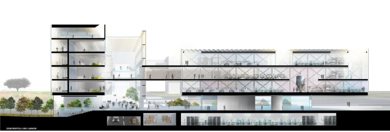 In our opinion innovation is not only in the technical and technology field but above all in a methodological approach of a design as complex as the Technology Park. Imagine the laboratory of the future as a reflection of today’s society and its incessant development is the key to create the ideal working environment. The project proposal is rooted in its flexibility and in its strength. It is not only to design a space in which users operate, but to create an environment that is the engine of change for researchers.