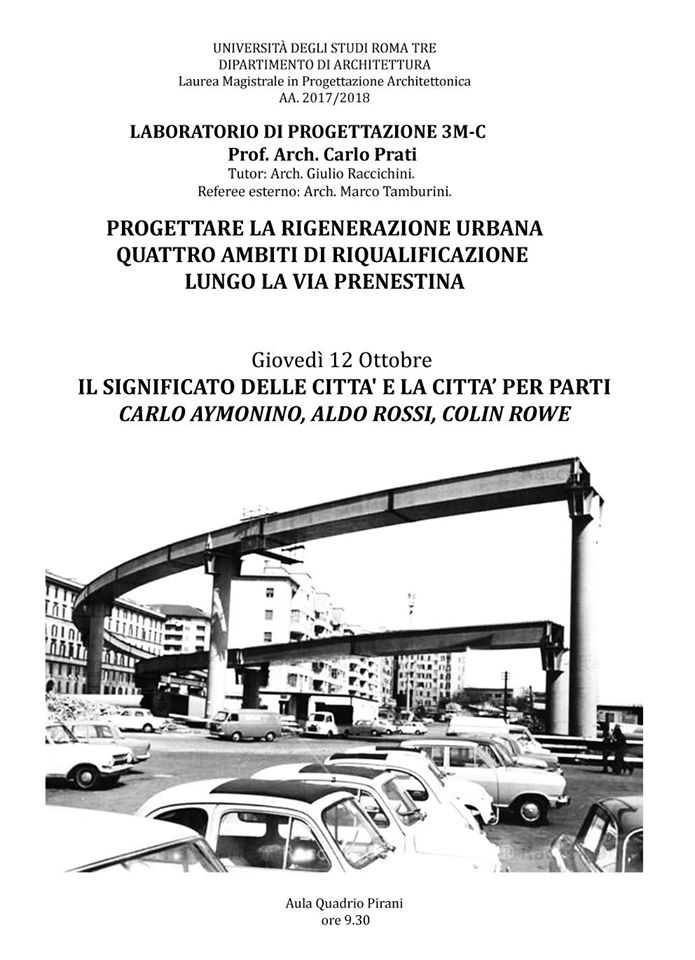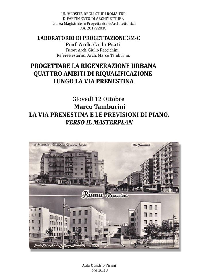 2018-2019 / 2017-2018 Laboratorio di Progettazione 3M-C (CFU8). Tema: PROGETTARE LA RIGENERAZIONE URBANA. Quattro Ambiti di Riqualificazione lungo la Via Prenestina (primo semestre). Magistrale (secondo semestre