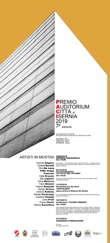 18 Ottobre 2019 Conferenza “Visioni urbane” Carmelo Baglivo, Renato Partenope, Carlo Prati, Franco Purini, Beniamino Servino. Auditorium città di Isernia, ore 14.00.