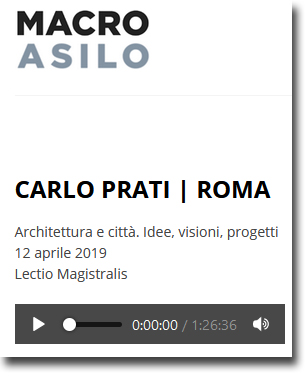 | Titolo: | LECTIO MAGISTRALIS. CARLO PRATI. ROMA, Architettura e città. Idee, visioni, progetti. |