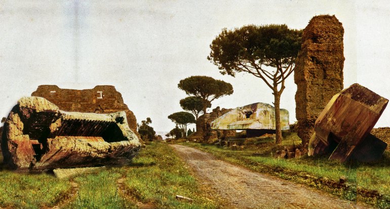 Roma è, secondo questa prospettiva di senso, la rappresentazione totale di un insieme fluido; ciò accentua l’interconnessione tra gli oggetti, facendo scomparire l’unità morfologica dell’insieme. La città è una entità planetaria diffusa, un agente distribuito in maniera estesa, un enorme pianeta slums, proprio come predetto da Constant Nieuwenhuys con la sua New Babylon. Roma è un paradigma universale di città, in grado di rappresentare un caso studio ideale per mettere alla prova l’applicabilità delle teorie e delle sperimentazioni che porto avanti. Roman Bunker Archeology, denuncia inoltre il paradosso tutto contemporaneo di una Città-Guerra in cui, ad esempio, nel corso di una passeggiata (magari accedendo da Piazza del Popolo a Via del corso) possiamo incontrare un “Checkpoint”, un presidio militare in assetto antiguerriglia, ad ulteriore verifica della non località della condizione romana.
