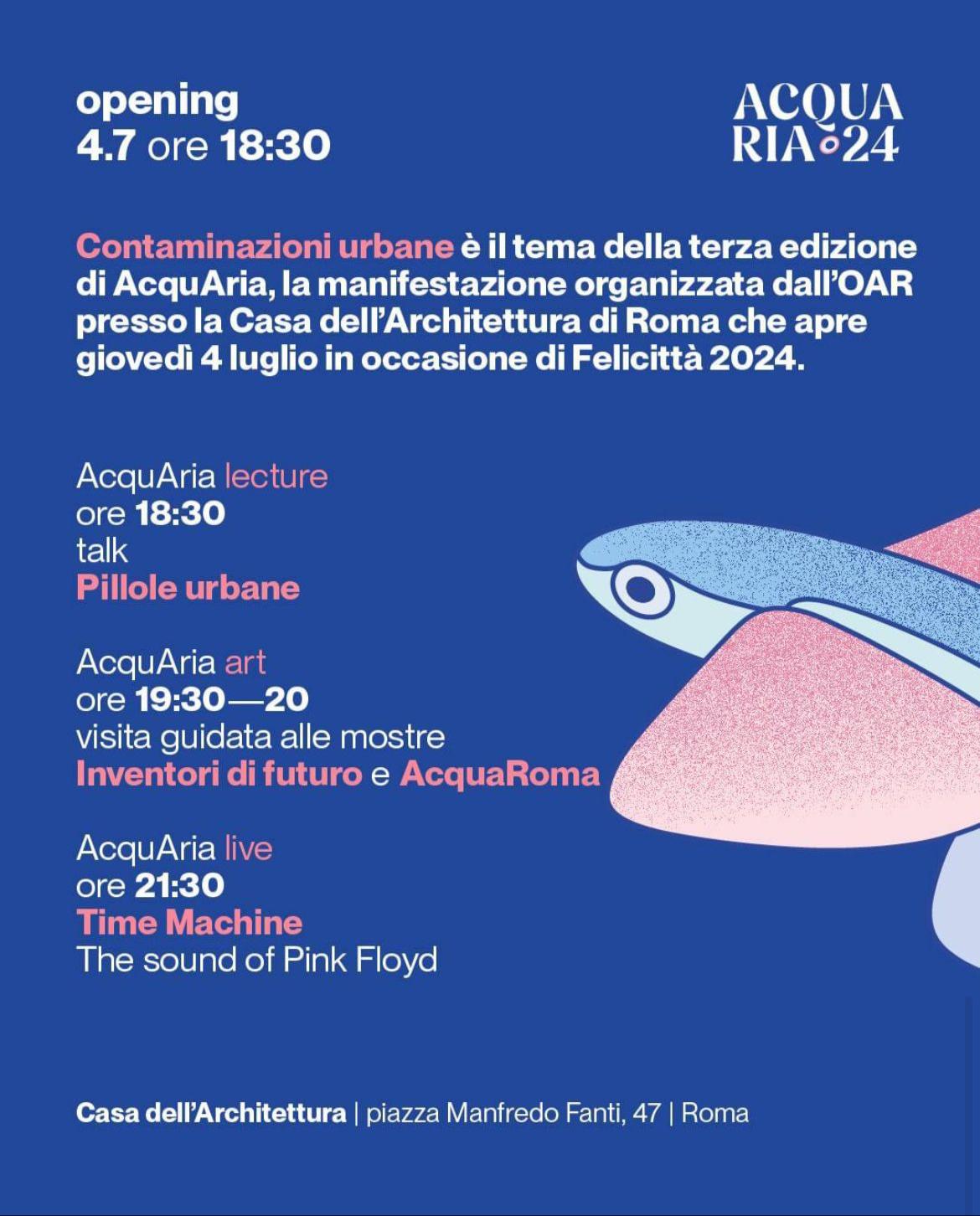 ACQUAROMA a ACQUARIA https://www.architettiroma.it/notizie/architettura/acquaria-2024-dal-4-luglio-la-rassegna-estiva-alla-casa-dellarchitettura/